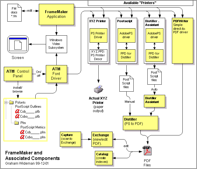 This is my current model of the components which compose the FrameMaker 5.5.6 product, and their functions. Open to critique.